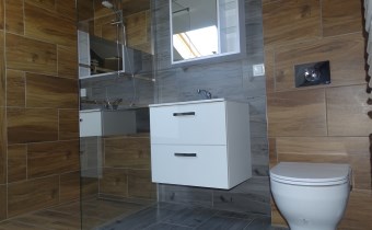 Przestronna Część wspólna posiada toaletę i wyjście na taras. Pomysłów na nią jest mnóstwo. Można wstawić stół do ping ponga, czy bilard lub piłkarzyki. Na stronach bookingowych takie zdjęcia to magnes dla gości szukających miejsc noclegowych.