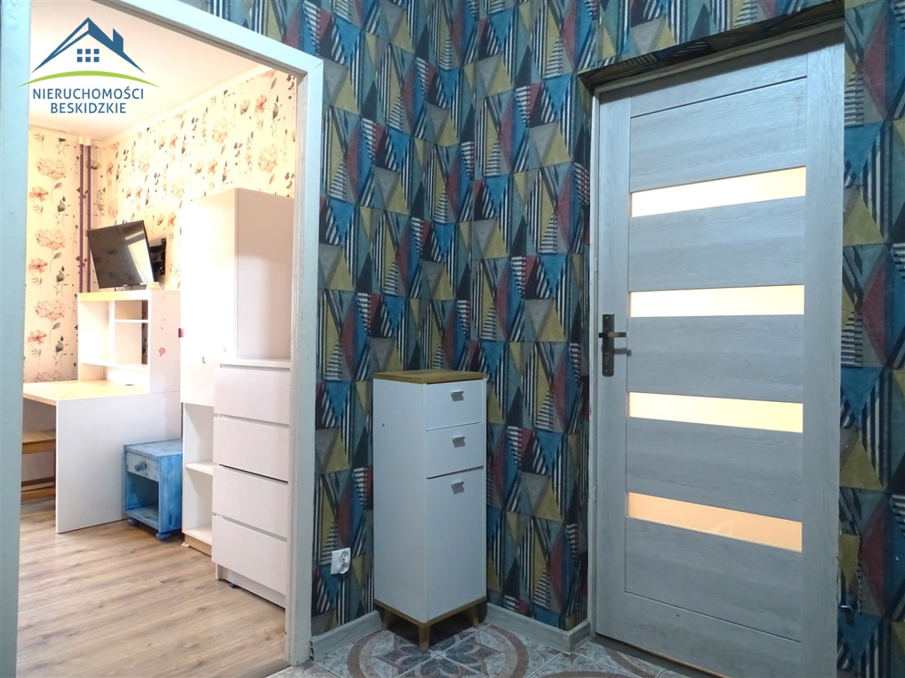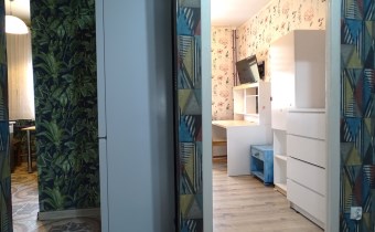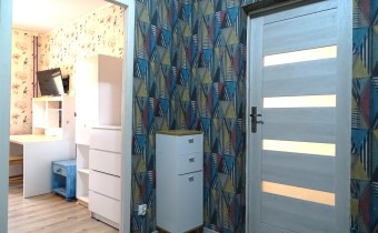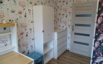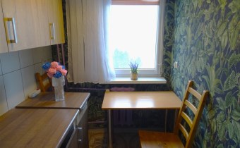 stąd też możliwość większych negocjacji cenowych. Niewątpliwie ma potencjał, ponieważ pomieszczenia są jasne (pomimo ciemnych tapet w przedpokoju i sypialni) i całość sprawia wrażenie większej powierzchni niż w rzeczywistości.